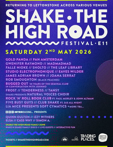Since 2017, we've hosted over 100 live acts across multiple venues in Leytonstone, including Snapped Ankles, Poly-Ritmo, Alexis Taylor (Hot Chip), Donna Thompson, Steve Davis, Sophie Jamieson, MADMADMAD, Demi Sosimi, Bullion, The Mystery Jets, Hayden Thorpe, Nathan Fake, Woman's Hour, Raf Daddy (The 2 Bears), Deptford Northern Soul Club, and many more!
